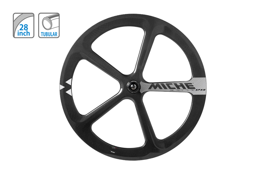 MICHE ホイール UDカーボンと3Kカーボンの積層構造により、剛性とエアロ効果を兼ね備えたトラック競技に最適なホイールです。AL7075-T6のアルミハブにはセラミックベアリングが採用されており、摩擦抵抗を最低限に抑えます。スルーアクスル12mm用アダプターが付属します。 税込価格 ¥364,100 カラー ブラック 素材 3Kカーボン サイズ 28インチ リム幅:20mm/リム高:50mm 重量 940g